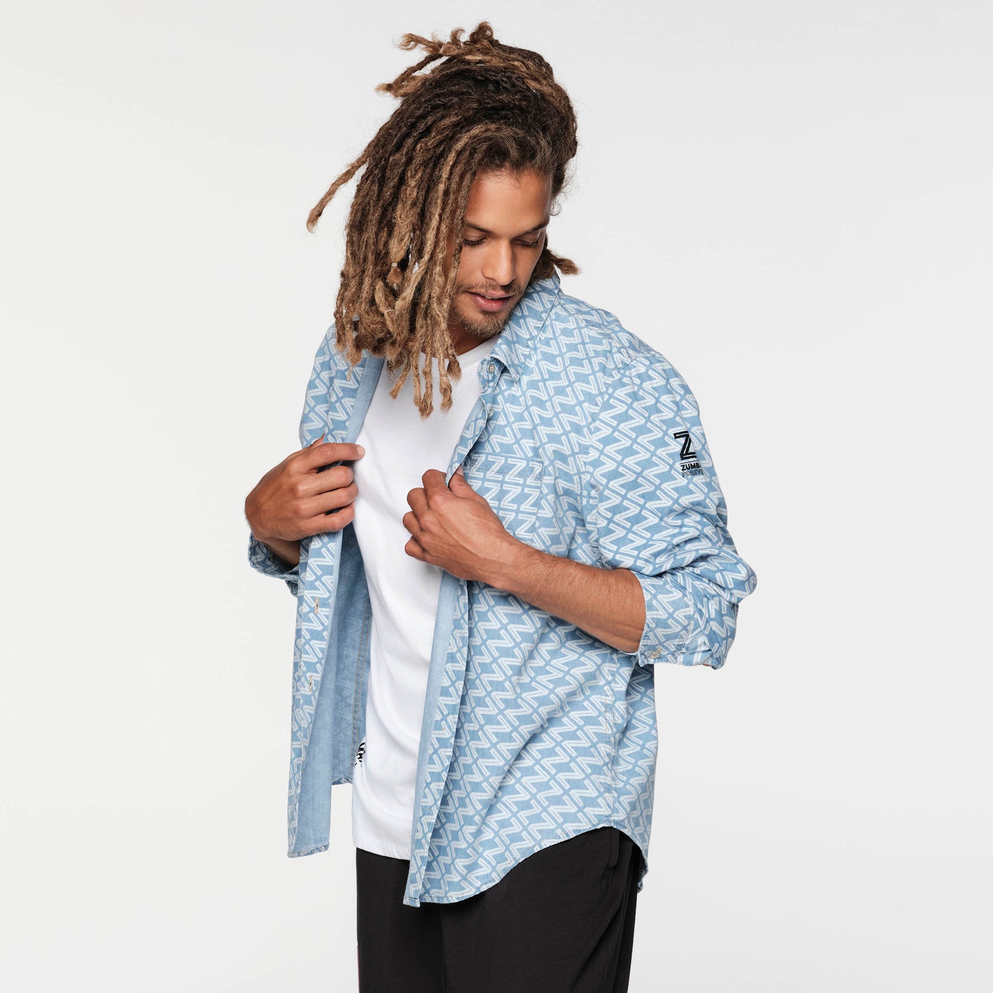 � All over "Z" printed denim button down