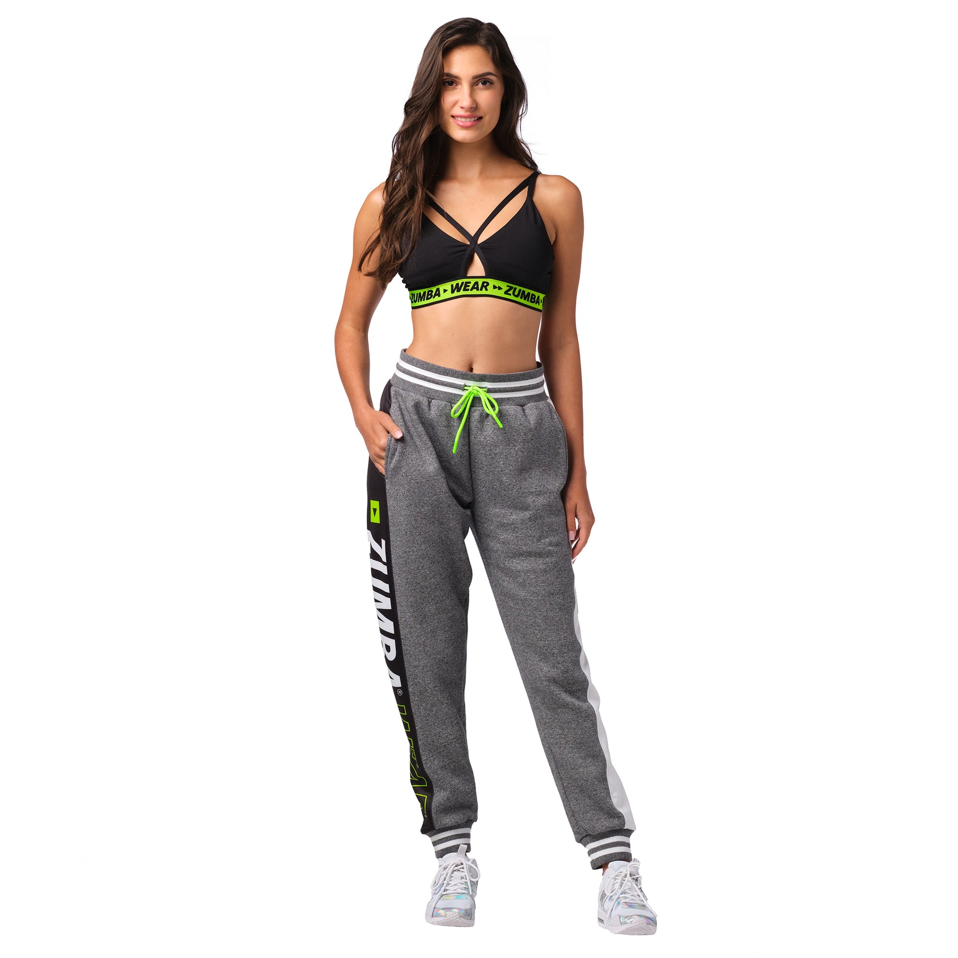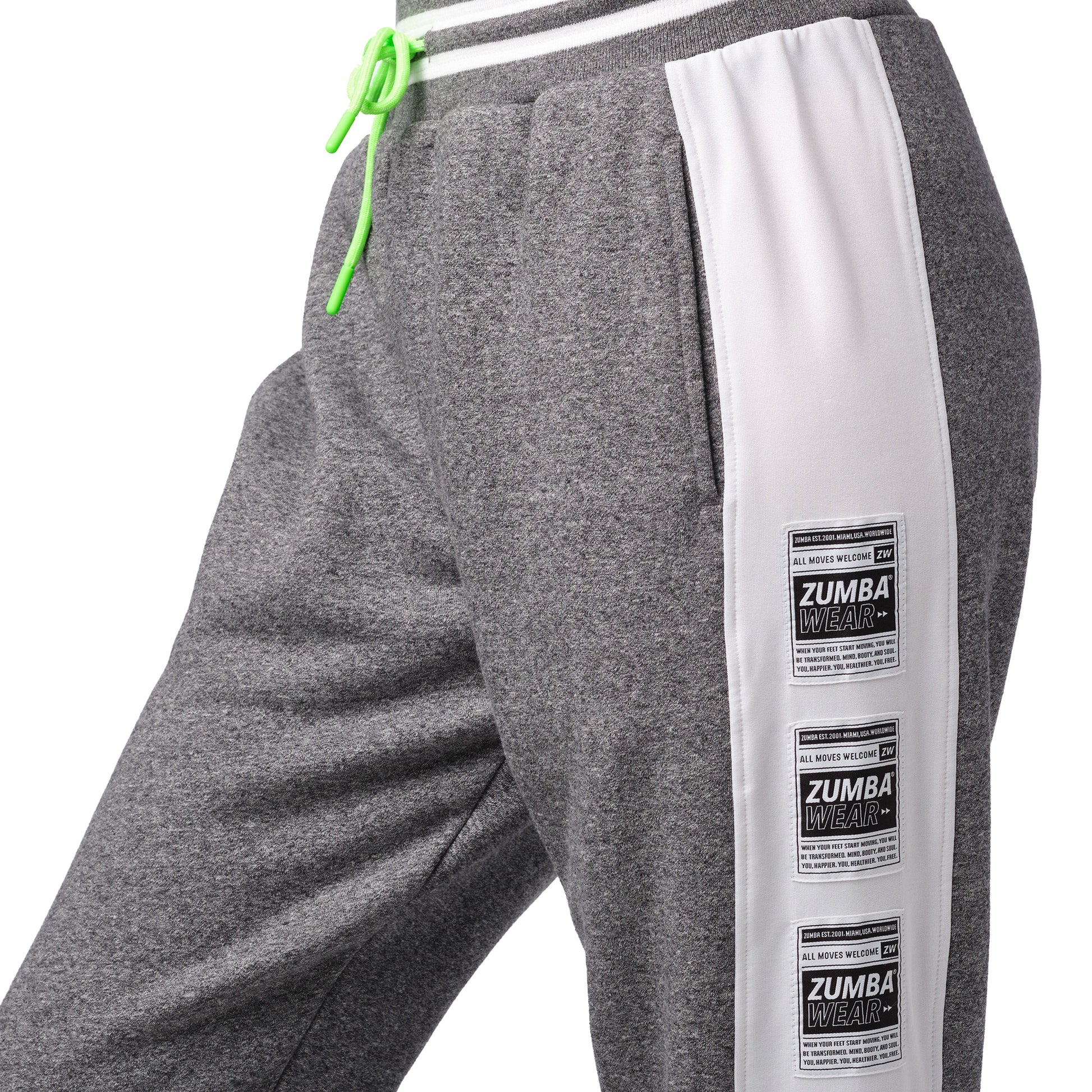� Ribbed Cuffs And Waistband With Drawcords � Side Pockets On Both Sides � Sublimated Zumba Branding On Right Side � 3 Zumba Wear Branded Heat Seals On Left Side � Relaxed Fit