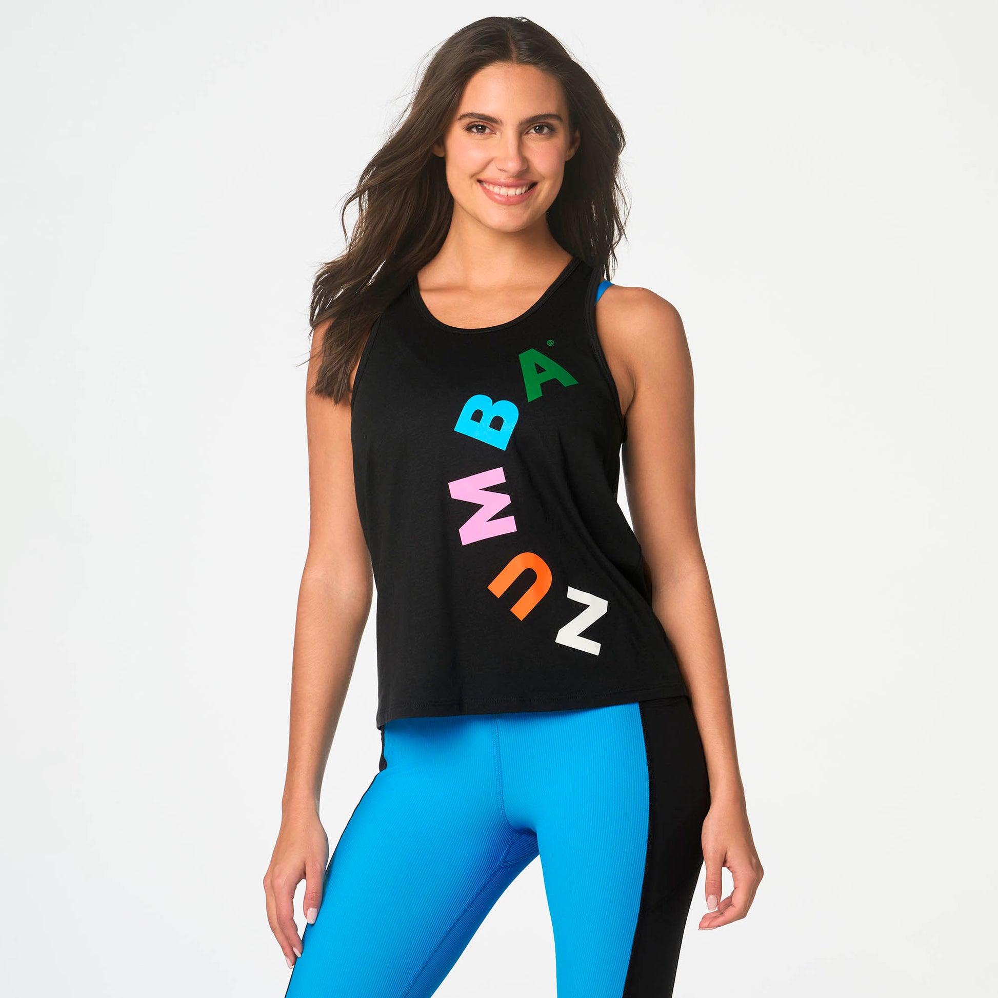 • Multicolor Zumba graphic on front