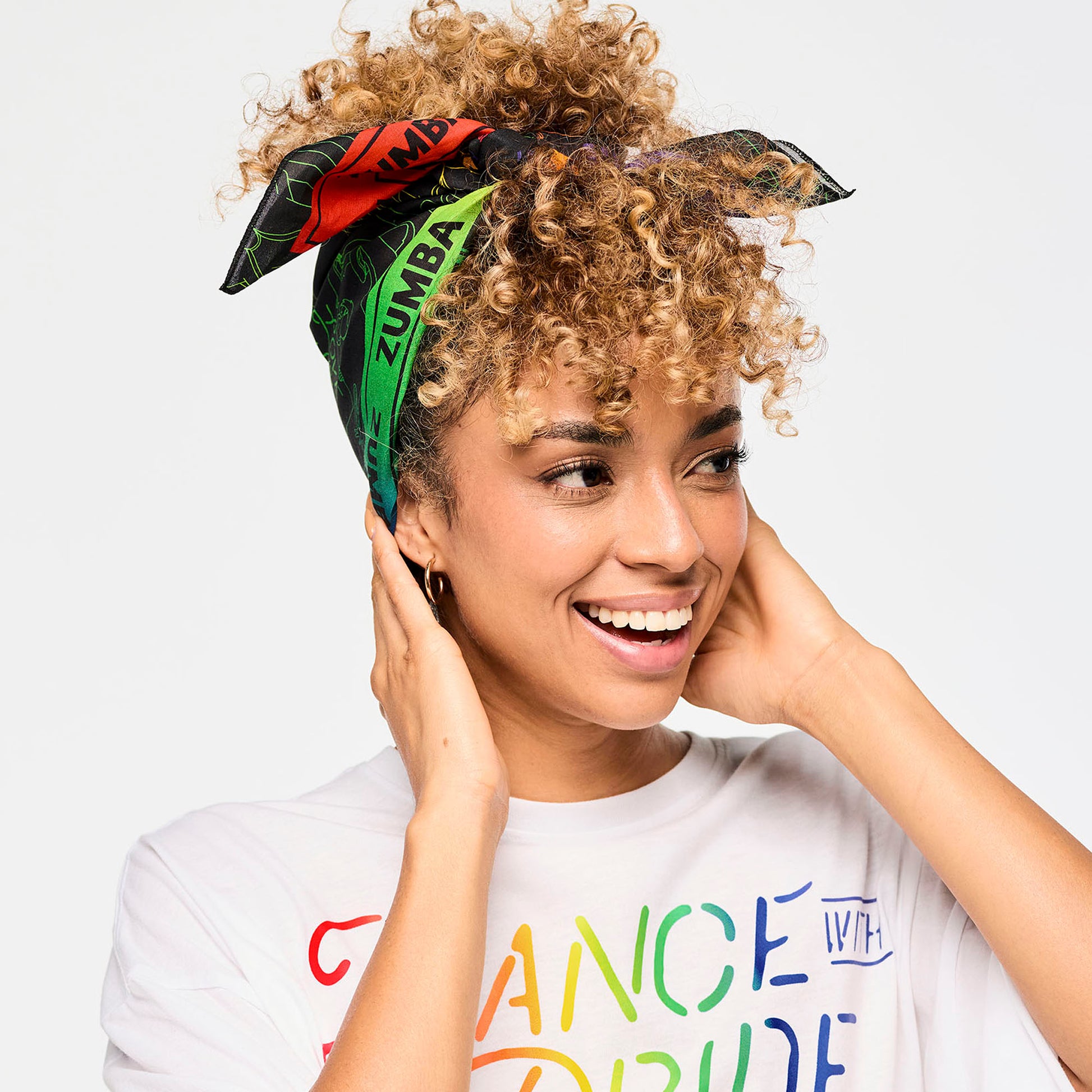 • Brightly printed Zumba branded bandanas